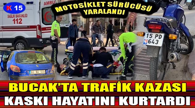 BUCAK’TA TRAFİK KAZASI: KASKI HAYATINI KURTARDI