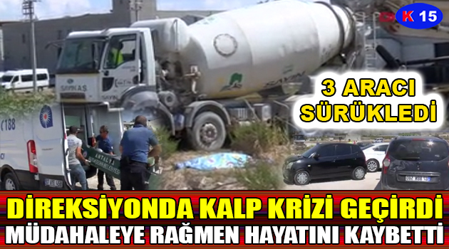 Antalya’da direksiyonda kalp krizi geçiren 61 yaşındaki Nusurettin Akçay’ın kullandığı beton mikseri, park halindeki 3 araca çarptıktan sonra boş arazide durdu. Hayatını kaybeden AkçayR...