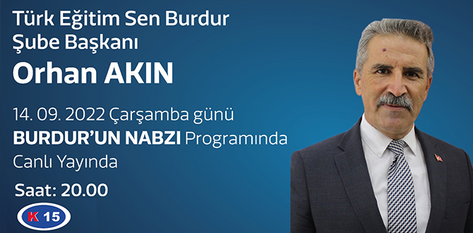 Kanal 15 ekranlarında yayınlanan “Burdur’un Nabzı” programı yarın akşam izleyiciyle buluşacak. Bilal Karasakal’ın moderatörlüğünü yaptığı Burdur’un Nabzı” programının bu haftaki konuğu Türk Eğitim-Sen...