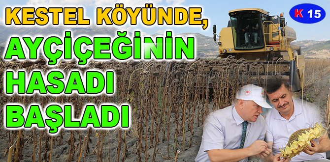 KESTEL KÖYÜNDE, TAKEP KAPSAMINDA EKİMİ YAPILAN AYÇİÇEĞİ HASADI BAŞLADI