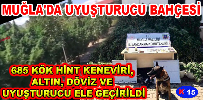 MUĞLA’DA UYUŞTURUCU BAHÇESİ: 685 KÖK HİNT KENEVİRİ, ALTIN, DÖVİZ VE UYUŞTURUCU ELE GEÇİRİLDİ
