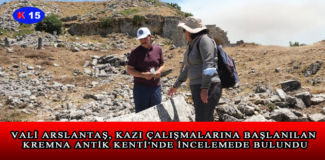 VALİ ARSLANTAŞ, KAZI ÇALIŞMALARINA BAŞLANILAN KREMNA ANTİK KENTİ’NDE İNCELEMEDE BULUNDU