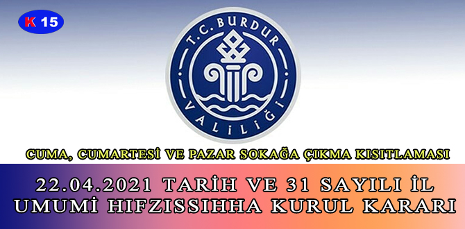 22.04.2021 TARİH VE 31 SAYILI İL UMUMİ HIFZISSIHHA KURUL KARARI
