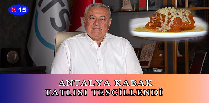 Antalya Ticaret Sanayi Odası (ATSO) Başkanı Davut Çetin, Antalya’nın eşsiz lezzeti “Antalya Kabak Tatlısı” için Türk Patent ve Marka Kurumu’ndan Coğrafi İşaret Tescil Belgesi alındığını bildirdi. Anta...
