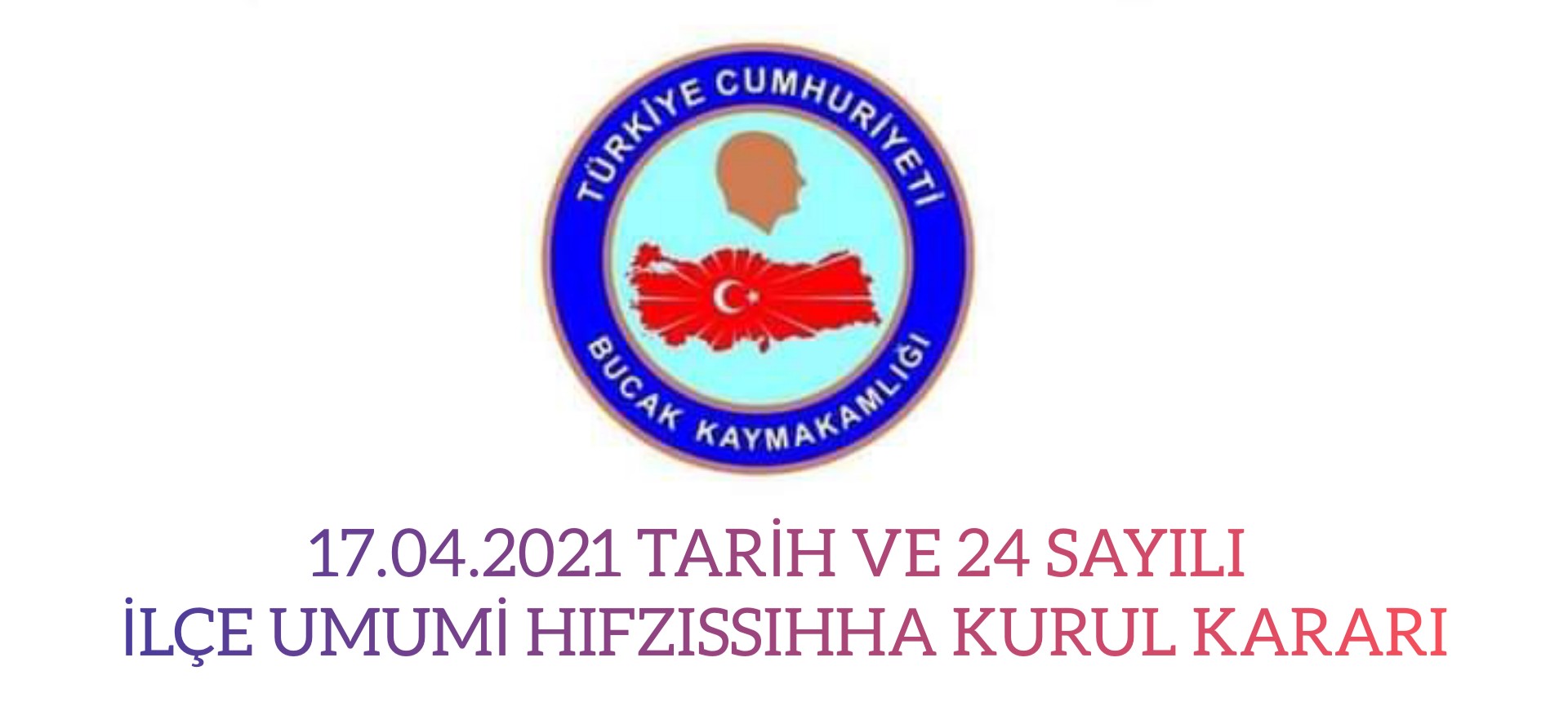 17.04.2021 TARİH VE 24 SAYILI İLÇE UMUMİ HIFZISSIHHA KURUL KARARI