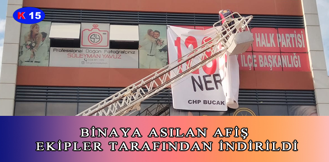 BİNAYA ASILAN AFİŞ EKİPLER TARAFINDAN İNDİRİLDİ