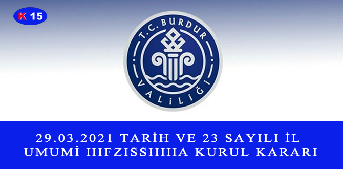Umumi Hıfzıssıhha Kanunun 23. Maddesine göre, 29.03.2021 Pazartesi günü saat 23.00’da Burdur Valisi Ali Arslantaş başkanlığında toplanan İl Umumi Hıfzıssıhha Kurulu tarafından bir takım kararla...