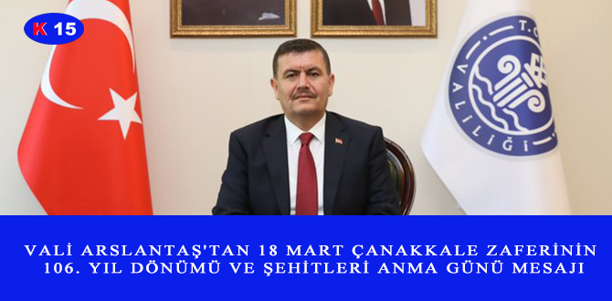VALİ ARSLANTAŞ’TAN 18 MART ÇANAKKALE ZAFERİNİN 106. YIL DÖNÜMÜ VE ŞEHİTLERİ ANMA GÜNÜ MESAJI