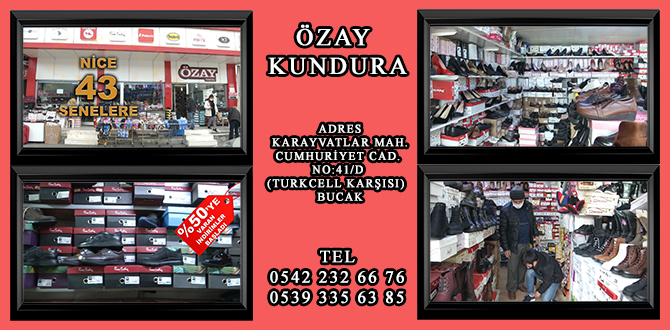 ÖZAY KUNDURA’DA 43.YILINA VE SEZON SONUNA ÖZEL ; BAY BAYAN ÇOCUK SPOR KLASİK TÜM MARKA MODEL AYAKKABILARDA,TERLİK,VALİZ VE ÇANTALARDA %50’YE VARAN İNDİRİMLER BAŞLADI..!! AYRICA SİPARİŞİNİZ ÜZER...