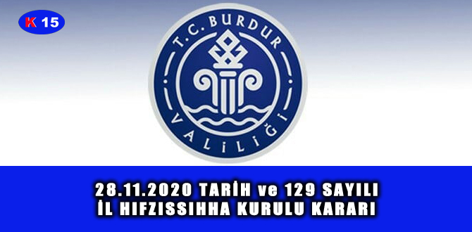 28.11.2020 TARİH ve 129 SAYILI İL HIFZISSIHHA KURULU KARARI