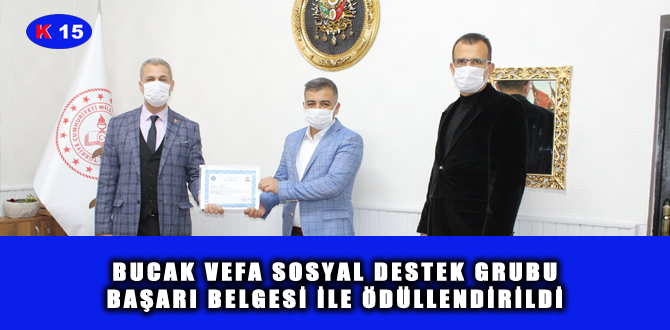 BUCAK VEFA SOSYAL DESTEK GRUBU BAŞARI BELGESİ İLE ÖDÜLLENDİRİLDİ