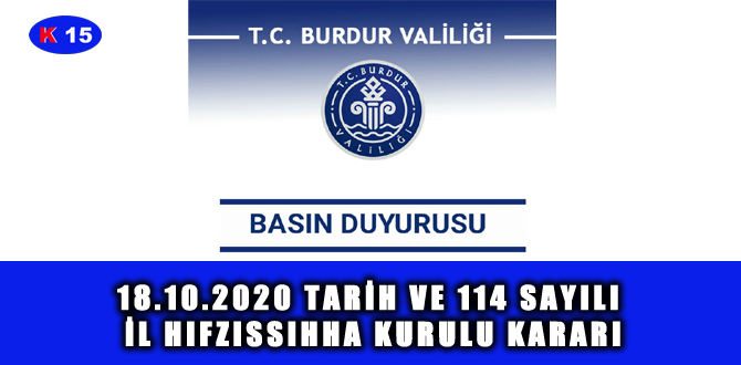 18.10.2020 TARİH VE 114 SAYILI İL HIFZISSIHHA KURULU KARARI