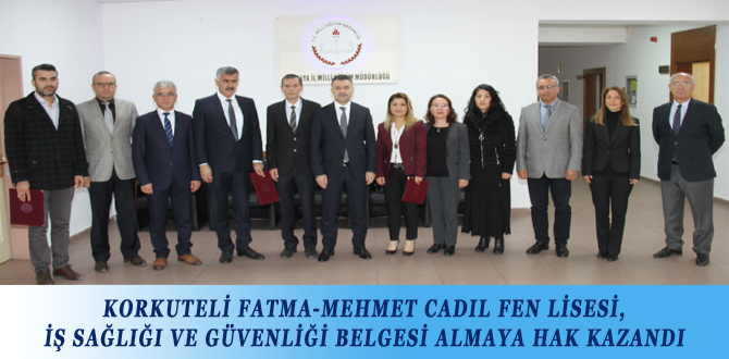 KORKUTELİ FATMA-MEHMET CADIL FEN LİSESİ, İŞ SAĞLIĞI VE GÜVENLİĞİ BELGESİ ALMAYA HAK KAZANDI