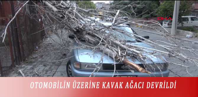OTOMOBİLİN ÜZERİNE KAVAK AĞACI DEVRİLDİ