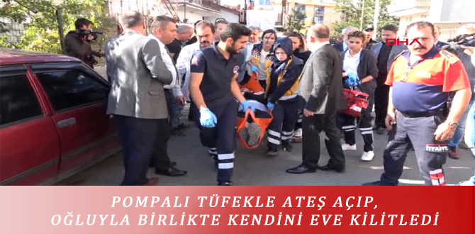 POMPALI TÜFEKLE ATEŞ AÇIP, OĞLUYLA BİRLİKTE KENDİNİ EVE KİLİTLEDİ