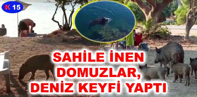 SAHİLE İNEN YABAN DOMUZLARI, DENİZ KEYFİ YAPTI