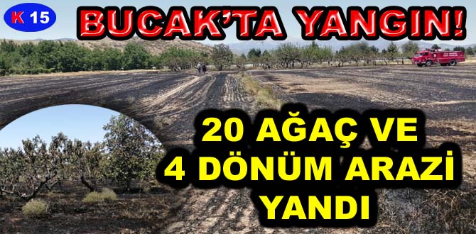 BUCAK’TA YANGIN: 20 AĞAÇ VE 4 DÖNÜM ARAZİ YANDI