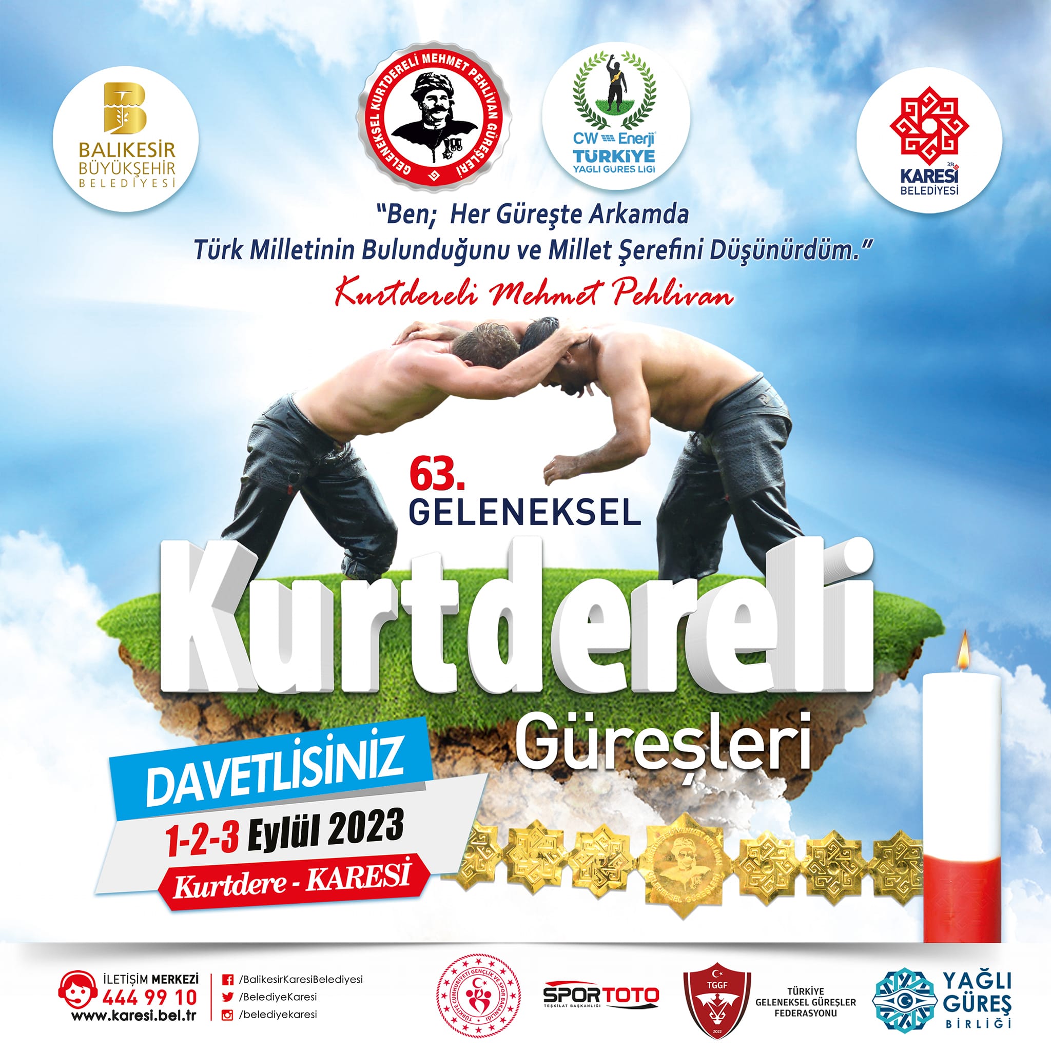 Bu yıl 63. düzenlenecek olan Kurtdereli Mehmet Pehlivan Güreşleri, 1-3 Eylül tarihleri arasında Balıkesir merkeze bağlı Karesi ilçesi kırsal Kurtdere Mahallesi’nde düzenlenecek. 1.000’e yakın pehlivan...