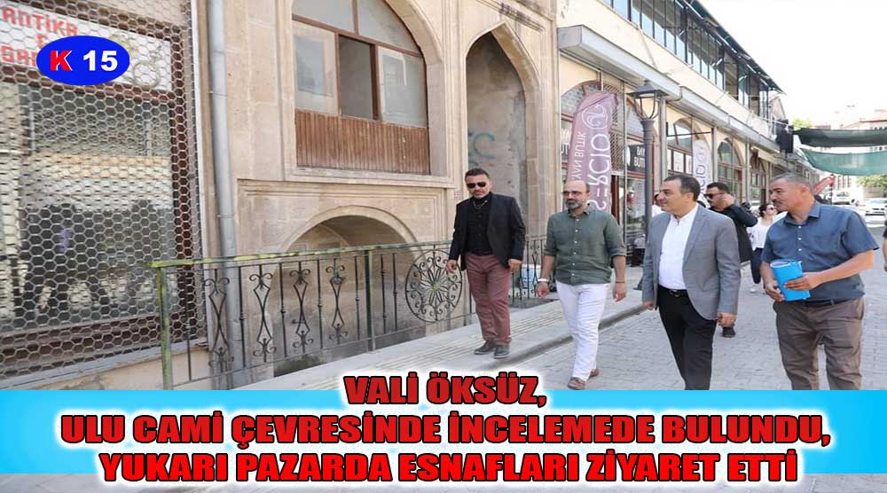 VALİ ÖKSÜZ, ULU CAMİ ÇEVRESİNDE İNCELEMEDE BULUNDU, YUKARI PAZARDA ESNAFLARI ZİYARET ETTİ