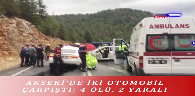 AKSEKİ’DE İKİ OTOMOBİL ÇARPIŞTI; 4 ÖLÜ, 2 YARALI