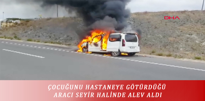ÇOCUĞUNU HASTANEYE GÖTÜRDÜĞÜ ARACI SEYİR HALİNDE ALEV ALDI
