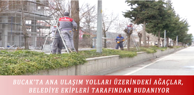 BUCAK’TA ANA ULAŞIM YOLLARI ÜZERİNDEKİ AĞAÇLAR, BELEDİYE EKİPLERİ TARAFINDAN BUDANIYOR