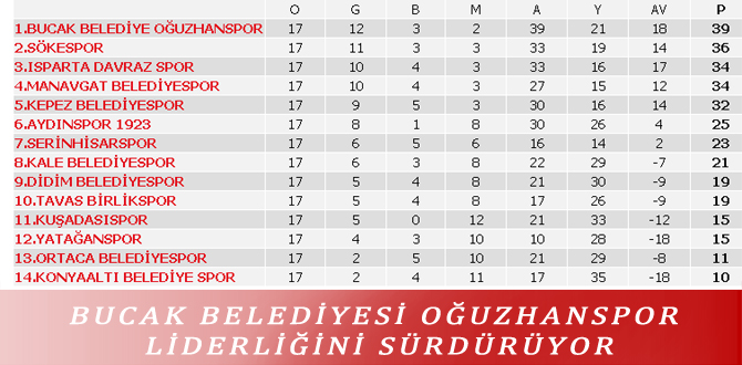 BUCAK BELEDİYESİ OĞUZHANSPOR LİDERLİĞİNİ SÜRDÜRÜYOR