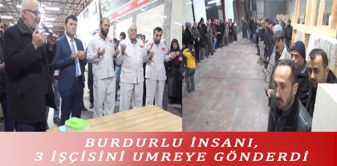 Burdurlu İş İnsanı Orhan Çiçek şirketinin 14’üncü kuruluş yıldönümünde başarılı üç çalışanını Umre ile ödüllendirdi. Burdur Organize Sanayi Bölgesi’nde Mermercilik faaliyetinde bulunan İş İnsanı Orhan...