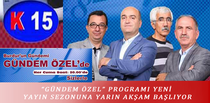 Kanal 15 ekranlarında Cuma akşamlarının vazgeçilmezi olacak açık oturum programı “Gündem Özel” yeni yayın sezonuna yarın akşam başlayacak. Farklı konu ve konukların yer alacağı program 30 Ekim Cuma sa...