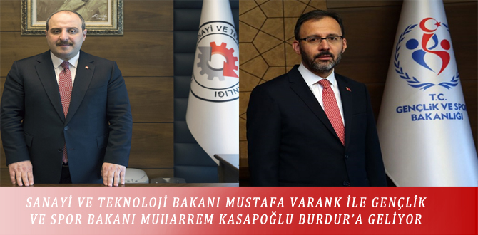 SANAYİ VE TEKNOLOJİ BAKANI MUSTAFA VARANK İLE GENÇLİK VE SPOR BAKANI MUHARREM KASAPOĞLU BURDUR’A GELİYOR