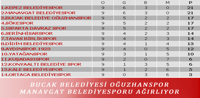 Bölgesel Amatör Lig 7. Grupta 10. Hafta maçları bugün oynanacak. Bucak Belediyesi Oğuzhanspor bu hafta kendi evinde güçlü rakibi Manavgat Belediyesporu ağırlayacak. Karşılaşma saat 14.00’da Bucak İlç...