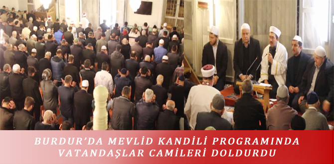 BURDUR’DA MEVLİD KANDİLİ PROGRAMINDA VATANDAŞLAR CAMİLERİ DOLDURDU