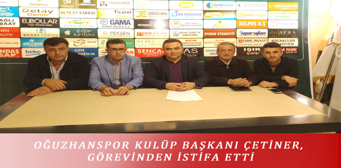 Bucak Belediyesi Oğuzhanspor Kulüp Başkanı Hüseyin Çetiner, bugün kulüp yönetim binasında düzenlediği basın toplantısı ile Başkanlık görevinden istifa ettiğini kamuoyu ile paylaştı. 31 Mart 2019 tarih...