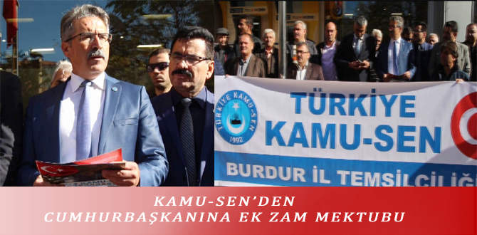 Kamu-Sen Burdur Şube Başkanı Orhan Akın ve Kamu-Sen’e bağlı Sendika Başkanları Cumhurbaşkanı Recep Tayyip Erdoğan’a Ek Zam talebini içeren mektup gönderdi. Kamu-Sen Burdur Şube Başkanı Orhan Akın, Bur...