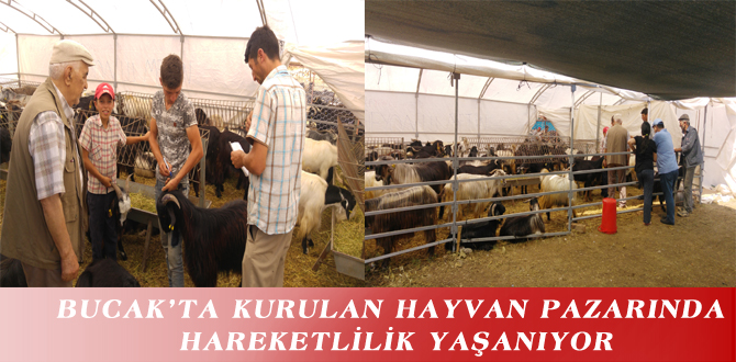 Bucak Kumar Mevkiinde kurulan kurbanlık hayvan pazarı, bayrama sayılı günler kala hareketlenmeye başladı. Satıcılar, müşterilerin teklif ettiği fiyattan alıcılar da satıcıların söylediği fiyattan memn...