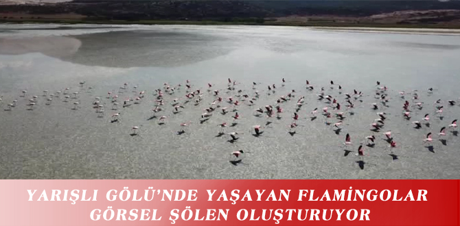 YARIŞLI GÖLÜ’NDE YAŞAYAN FLAMİNGOLAR GÖRSEL ŞÖLEN OLUŞTURUYOR