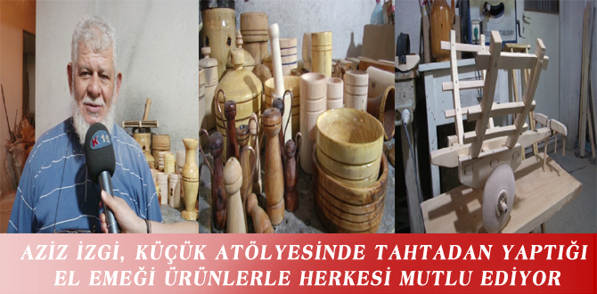 AZİZ İZGİ, KÜÇÜK ATÖLYESİNDE TAHTADAN YAPTIĞI EL EMEĞİ ÜRÜNLERLE HERKESİ MUTLU EDİYOR