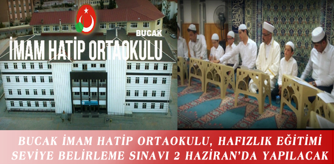 BUCAK İMAM HATİP ORTAOKULU, HAFIZLIK EĞİTİMİ SEVİYE BELİRLEME SINAVI 2 HAZİRAN’DA YAPILACAK