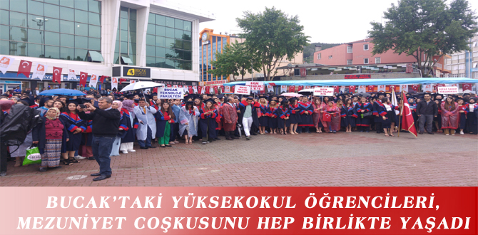 BUCAK’TAKİ YÜKSEKOKUL ÖĞRENCİLERİ, MEZUNİYET COŞKUSUNU HEP BİRLİKTE YAŞADI