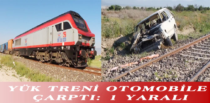 YÜK TRENİ OTOMOBİLE ÇARPTI: 1 YARALI