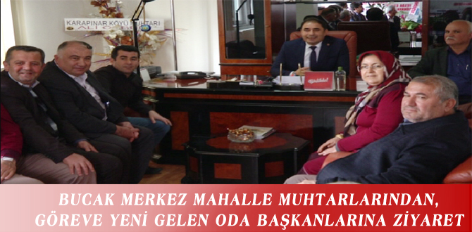 Bucak Merkez Mahalle Muhtarları Bucak’taki Oda Başkanlarını ziyaret etti. Muhtarlar oda ziyaretleri kapsamında oda başkanlığına yeni seçilen Bucak Şoförler ve Otomobilciler Odası Başkanı Arif Mayda il...