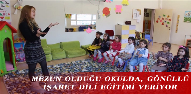 MEZUN OLDUĞU OKULDA, GÖNÜLLÜ İŞARET DİLİ EĞİTİMİ VERİYOR