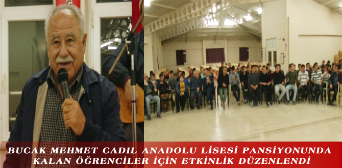 Bucak Mehmet Cadıl Anadolu Lisesi’nin pansiyonunda kalan ve Bucak’taki çeşitli liselerde öğrenim gören lise öğrencileri için Çarşamba günü akşam okulun konferans salonunda etkinlik düzenlendi. Başka ş...
