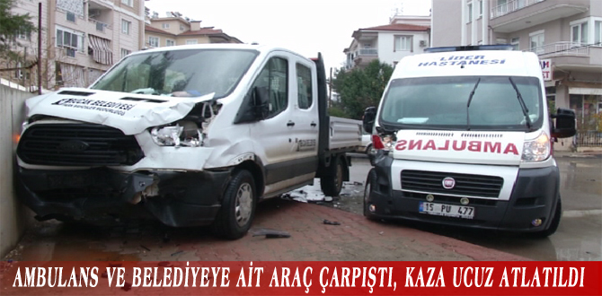 AMBULANS VE BELEDİYEYE AİT ARAÇ ÇARPIŞTI, KAZA UCUZ ATLATILDI