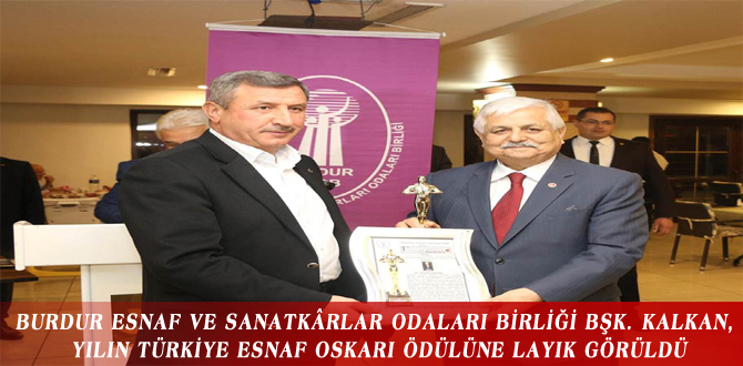 BURDUR ESNAF VE SANATKÂRLAR ODALARI BİRLİĞİ BŞK. KALKAN, YILIN TÜRKİYE ESNAF OSKARI ÖDÜLÜNE LAYIK GÖRÜLDÜ