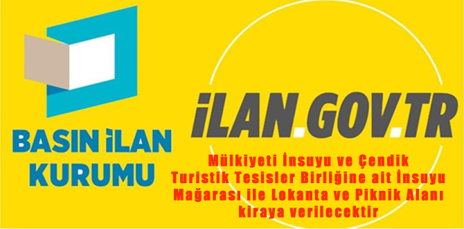 Basın İlan Kurumu’nun ilan portalı ilan.gov.tr’de yer alan ilana göre; İNSUYU ve ÇENDİK TURİSTİK TESİSLER BİRLİĞİ BAŞKANLIĞINDAN Mülkiyeti Birliğe ait İnsuyu Mağarası ile Lokanta ve Pinik Alanı kira ...