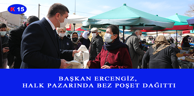 BAŞKAN ERCENGİZ, HALK PAZARINDA BEZ POŞET DAĞITTI