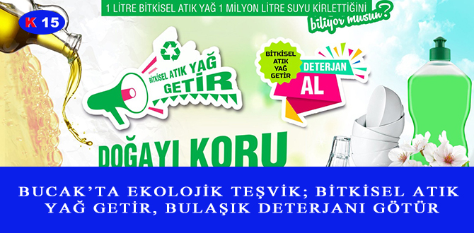 BUCAK’TA EKOLOJİK TEŞVİK; BİTKİSEL ATIK YAĞ GETİR, BULAŞIK DETERJANI GÖTÜR