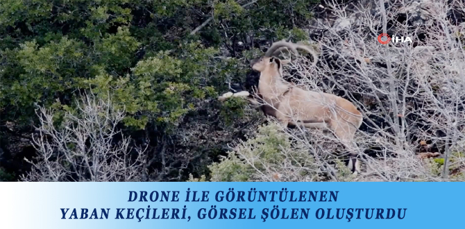 DRONE İLE GÖRÜNTÜLENEN YABAN KEÇİLERİ, GÖRSEL ŞÖLEN OLUŞTURDU