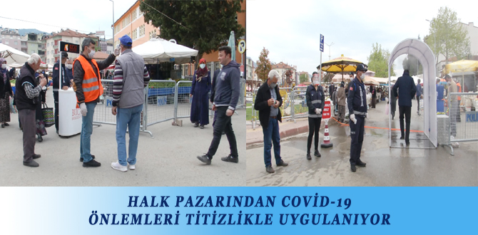 HALK PAZARINDAN COVİD-19 ÖNLEMLERİ TİTİZLİKLE UYGULANIYOR
